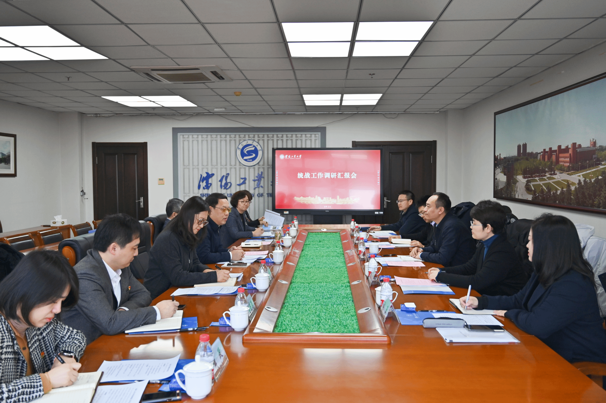 在汇报会上,贾玉明代表学校党委对调研组一行的到来表示诚挚欢迎,对省委统战部长期以来对我校统战工作的指导和支持表示感谢,并介绍了学校的发展历程和各项事业取得的成绩,简要介绍了学校统战工作基本情况,并表示学校将以此次调研指导为契机,进一步做好统一战线工作,发挥学科专业和人才优势,最大限度凝聚党外知识分子力量,为辽宁全面振兴新突破做出更大贡献。