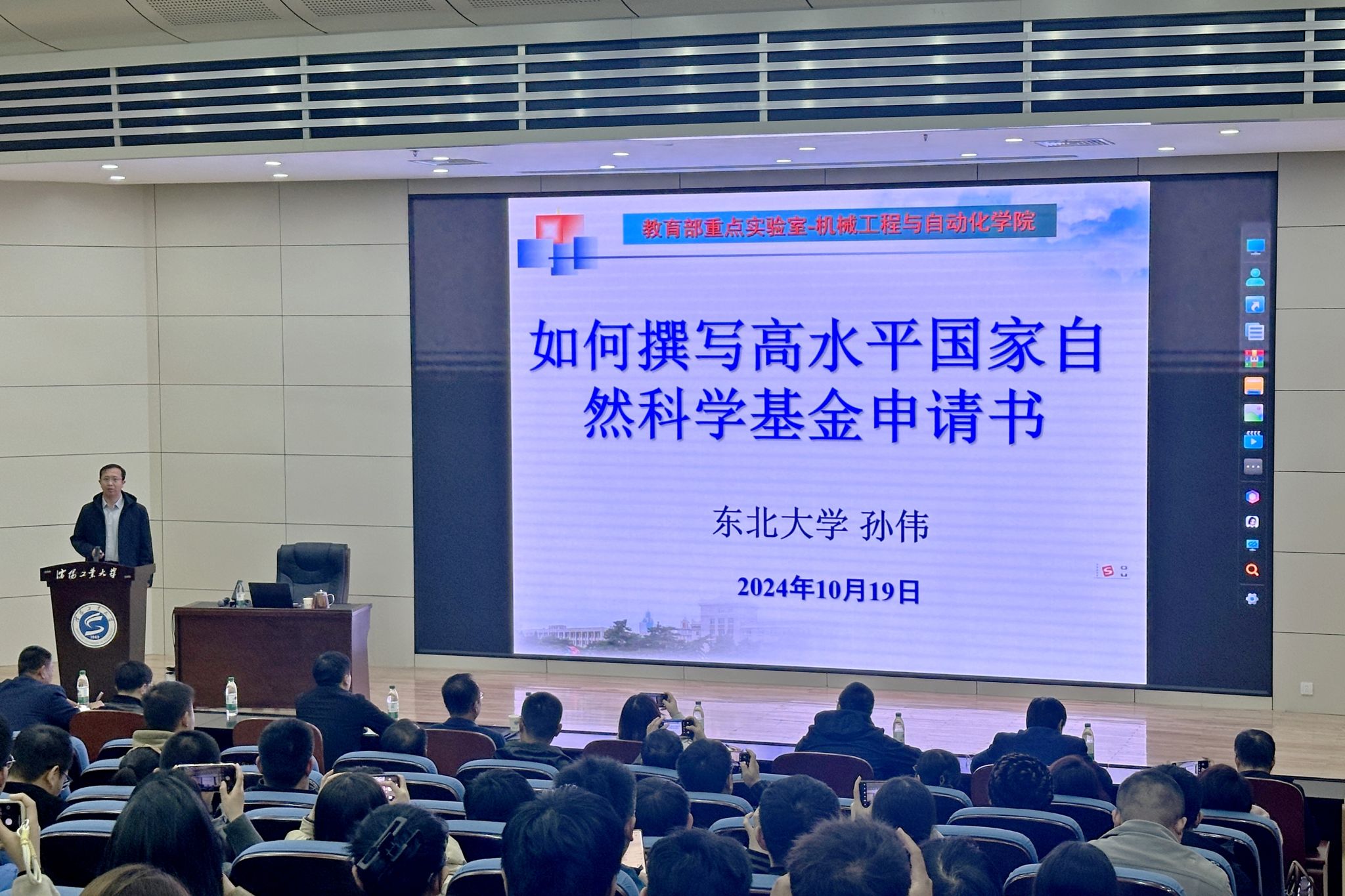 为进一步提升我校国家自然科学基金项目的申报质量,10月19日,学校在科学会堂举办了两场2025年度国家自然科学基金项目申报专题讲座。讲座特邀东北大学孙伟教授,就“如何撰写高水平国家自然科学基金申请书”进行了深入细致的交流与指导。党委常委、副校长臧喜民出席会议,科学技术研究院有关负责同志,以及各二级单位的相关负责人、申报教师代表等200余人参加了会议。会议由科学技术研究院院长闫明主持。