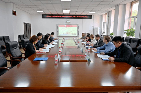 两校管理委员会成员回顾总结了第一次会议的讨论事项,确认了双方委员的职权范围,并由相关负责人分别从项目管理及招生、学生学习情况等方面介绍了项目的开展情况。随后,双方就未来在学术交流、科学研究等领域的合作进行了深入探讨,并确定了下一次项目管理委员会会议时间。