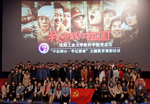 为更好地开展“不忘初心、牢记使命”主题教育,丰富教育形式、深化学习效果,软件学院党总支以弘扬爱国主义、歌颂伟大民族精神、激发广大党员热爱祖国、坚定信仰、践行奉献为主题,于10月16日,组织全体教职工和学生党员集体观看影片《我和我的祖国》。