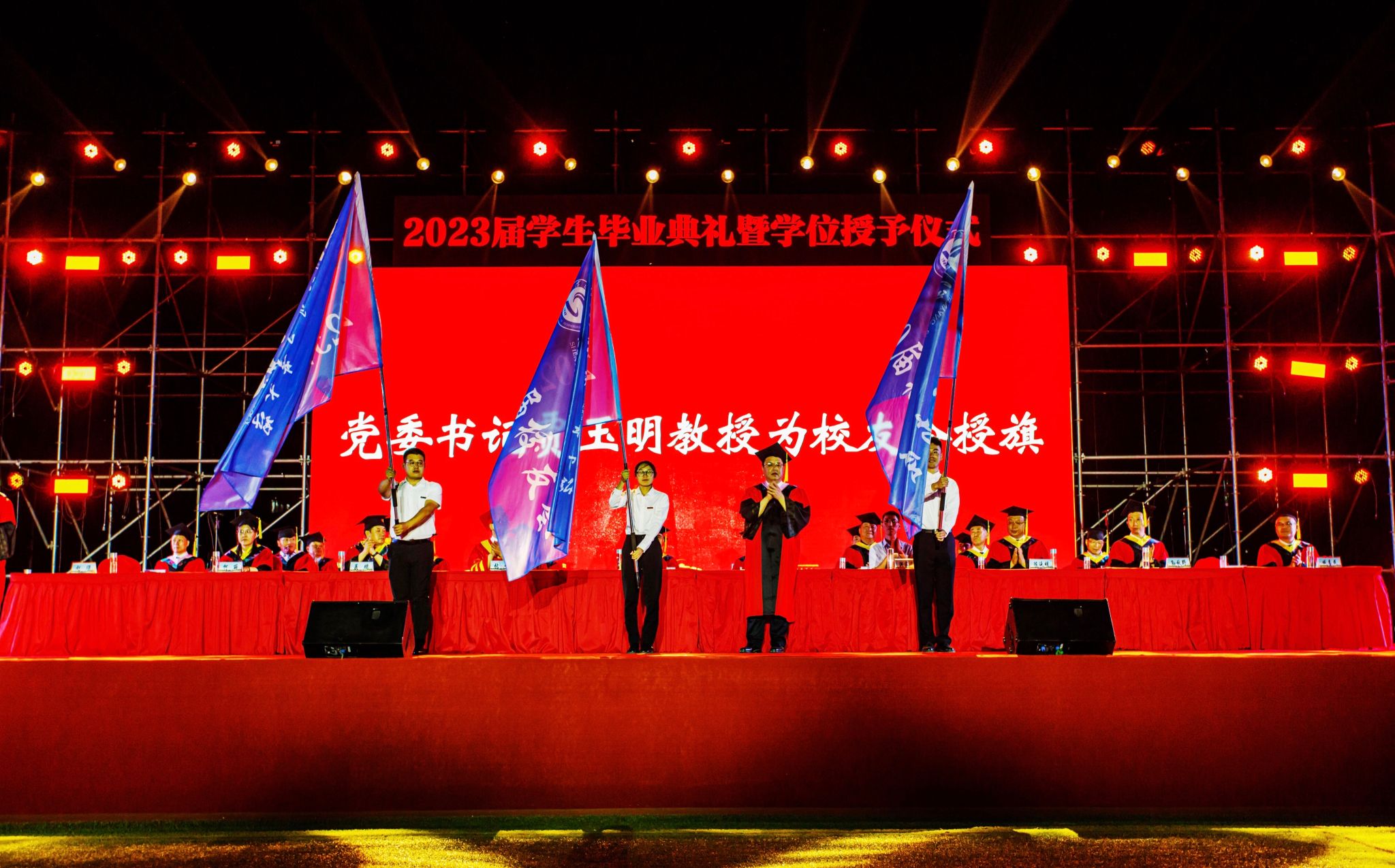胸怀家国情,奔赴新征程。6月19日晚,国产高清在线精品一区二区三区2023届学生毕业典礼暨学位授予仪式、毕业晚会在中央校区北操场盛大举行。全体校领导,校学位评定委员会委员,各学院、部门负责人,教职员工代表,校友代表,家长代表,全体2023届毕业生以及受邀返校的2020届、2022届校友五千余人参加活动。