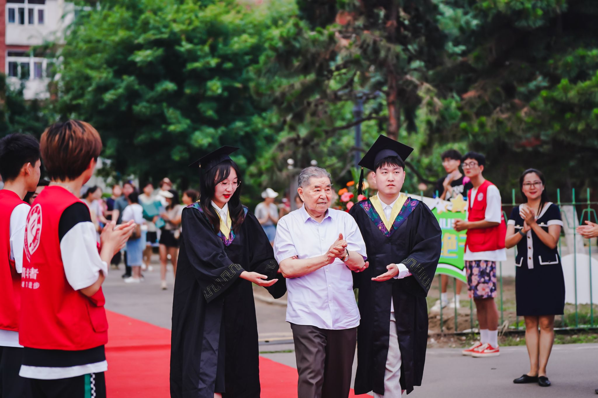 活动在温馨的快闪中拉开序幕,来自14个学院的毕业生代表用深情的音画共同演唱了《起风了》《最初的梦想》《星辰大海》等歌曲,教师代表、辅导员代表、校友代表、家长代表、后勤服务人员代表或寄语鼓励、殷殷嘱托毕业生,或表达对学校感激感谢之情,双向关爱的深情话语浓郁着毕业季的温馨氛围。